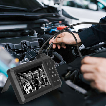 - Dual Lens & Split Screen Feature: Our borescope inspection camera features dual lens technology, allowing seamless switching between different viewing angles without the need for a side mirror. With a wide viewing angle of 70° per lens, even tight spaces can be easily explored. Simply press a button to switch between front lens, side lens and dual lens modes, giving you added flexibility and convenience.HD and Crisp 1080P Color Screen: Equipped with an upgraded 4.5-inch IPS screen, our endoscope camera offers a horizontal viewing angle of about 170°, ensuring a wider and more immersive visual experience. The 2.0 MP HD camera and second advanced CMOS sensor capture sharp 1080P images and smooth videos, while the 180° image rotation function allows you to easily adjust the viewing angle to suit your needs.Semi-rigid cable and adjustable LED light: Our endoscope camera features a flexible semi-rigid cable that allows easy maneuverability in hard-to-reach inspection areas. The cable is designed to effortlessly navigate deeper spaces. The camera is equipped with 8+1 adjustable LED lights, ensuring optimal visibility in dark or low-light conditions. Whether you're diagnosing wall, car, or HVAC duct problems, our endoscopic camera is a versatile and reliable tool.The endoscope camera with ergonomic design for user comfort and ease of use. The monitor can be easily held with one hand, while the cable is controlled with the other. Built-in 2600mAh battery, works about 4H on full charge, charged via USB cable. This makes it an ideal tool for HVAC and automotive professionals. From inspecting engines and cylinders to locating wires or bolts in walls and retrieving objects with magnets, our endoscope camera excels at narrow area inspections.Multipurpose Tool: Our package includes an industrial endoscope, a USB charging cable, a user manual and a set of accessories (including a hook and magnet). This endoscope camera is a practical addition to the toolbox of auto mechanics, HVAC technicians, plumbers and machinists. Its versatility and reliability make it indispensable in various industries, allowing efficient and precise inspections.