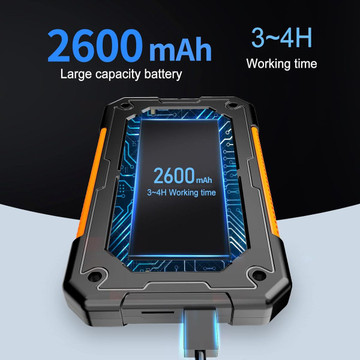 - The endoscope camera with ergonomic design for user comfort and ease of use. The monitor can be easily held with one hand, while the cable is controlled with the other. Built-in 2600mAh battery, works about 4H on full charge, charged via USB cable. This makes it an ideal tool for HVAC and automotive professionals. From inspecting engines and cylinders to locating wires or bolts in walls and retrieving objects with magnets, our endoscope camera excels at narrow area inspections.