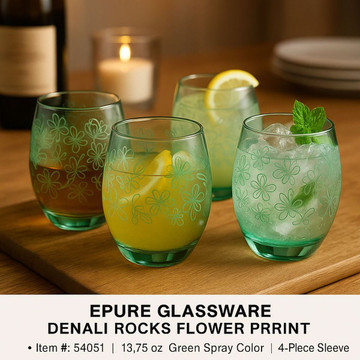 Elevate your everyday with Epure Glassware's Denali Rocks! These stunning 13.75 oz glasses, crafted in Saudi Arabia, boast a vibrant red spray color with a delicate floral print that adds a distinctive, sophisticated touch to every sip. Perfect for cocktails, juices, or your favorite spirits, the Denali Rocks glasses are a must-have for both everyday enjoyment and memorable celebrations. This four-piece set is ready to ship. Treat yourself – order your set today!