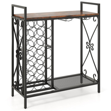 - Freestanding Wine Rack with Wide Countertop and Glass Holders
