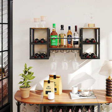 Claim your space with the Freestanding Wine Rack, a powerhouse of both style and storage! Unleash your inner sommelier with a dedicated wine rack, stemware holders, and bonus top shelf. This isn't just a wine rack; it's a versatile command center with a wide countertop, handy hooks, and a bottom shelf ready for anything. Crafted with a sturdy metal frame and anti-tipping design, it stands strong, even on uneven floors. Whether it is a home bar, a coffee station, or just to store daily necessities, upgrade your space and get yours today!