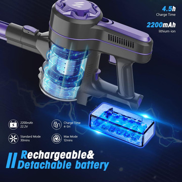 - Cordless vacuum cleaner's Cyclone technology, paired with a high-density filter, effectively eliminates 99.99% of fine dust and particles