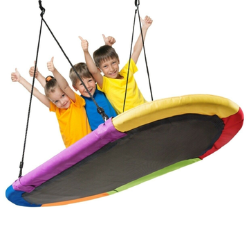 This platform tree swing is popular among both kids and adults. Made with a high-quality metal frame and Oxford cloth, this swing is weather-resistant and durable for long time use. The height can be adjusted from 40'' to 71'' and the multiply ropes with metal rings offer safety. The giant platform is comfortable to sit, read, and play on. The tree swing can be hung both indoors and outdoors.