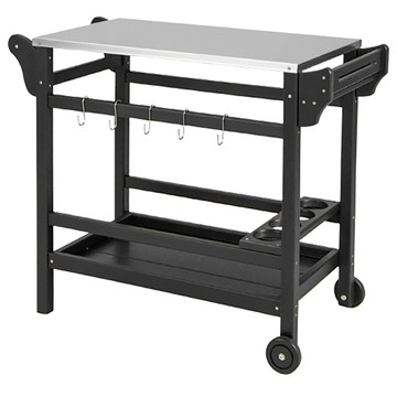 - Kitchen Rolling Island Cart with Stainless Steel Tabletop & Basket