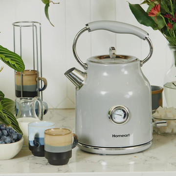 Reimagine your morning ritual with the Homeart Riva 1.7L Electric Kettle. Experience the blend of speed and sophistication as it delivers perfectly boiled water in a flash, ensuring your day starts without delay. Every cup is pure and clean, thanks to the removable limescale filter and BPA-free materials, while advanced auto shut-off and boil-dry protection provide absolute peace of mind. Its timeless, cordless design and 360-degree base offer effortless convenience and a touch of class for your modern kitchen. Make the smart choice for exceptional quality; secure your Riva Kettle today.