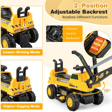 Fuel your child's adventure with the Kids' 6V Electric Ride-on Bulldozer! With a flexing steering wheel, foot pedal, various sound effects, and a folding basketball hoop, this bulldozer guarantees endless fun. Safety features like the anti-rollover device and ASTM/CPSIA certifications ensure peace of mind. Let your little one's imagination soar as they develop motor skills and hand-eye coordination in style!