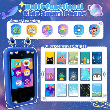 The Kids Smart Phone Toy is the perfect gift for your little ones! This toy phone features a touch screen MP3 player, learning games, and a smart kids camera. With its dual camera, your child can take funny photos with family and friends. The built-in MP3 player with speaker allows them to listen to their favorite songs anywhere. Plus, the 13 puzzle games help develop their logical thinking, problem-solving, and hand-eye coordination skills. The anti-addiction mode gives you peace of mind, while the silent mode ensures no noise disturbance.