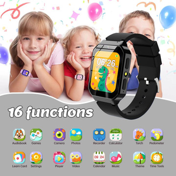 - Kids Smart Watch with 16 Puzzle Games HD Touch Screen Camera Music Player Pedometer Alarm Clock Calculator Flashlight Kids Watches Gift, Black