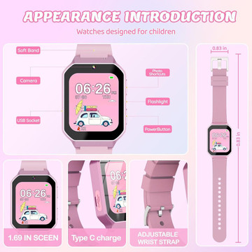 - Easy to use: no SIM card required. The kids watch has no call function, you don't need to download the app, all functions are built into the kids watch, very easy for kids to operate. We also provide built-in SD memory cards in this kids smart watch, help your child download MP3 nursery rhymes, images and videos.