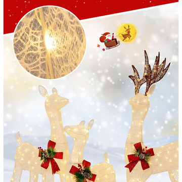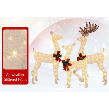 Experience the magic of Christmas with our Lighted Reindeer & Sleigh Set! This enchanting set features 462 vibrant LED lights in warm white, cold white, green, and red hues, creating a festive ambiance day and night. Crafted from durable materials, it's designed to withstand outdoor conditions, ensuring years of enjoyment. The sturdy zip ties and metal ground stakes make setup a breeze, while the life-like appearance and charming details add a touch of elegance to your holiday display. Whether you place it indoors or outdoors, this delightful set will captivate your guests and passersby, bringing the magic of Christmas to life.