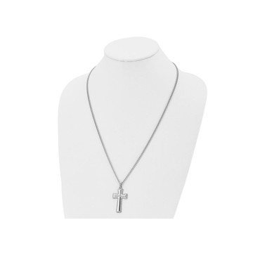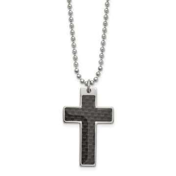- Mens Black Carbon Fiber Cross Pendant Necklace