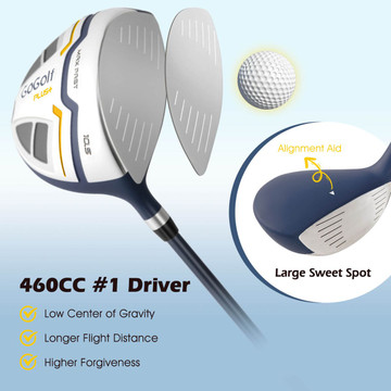 The Men’s Profile Complete 10-Piece Golf Club Package Set is the perfect choice for golfers looking for a comprehensive set of clubs that offer both performance and convenience. This 10-piece set includes a 460cc alloy driver that delivers impressive distance and forgiveness, as well as irons with additional weight on the club head for improved accuracy and center gravity. The clubs are made of durable alloy and carbon fiber materials, ensuring they will last for years. TPR handles offer a comfortable and enhanced feel, while the lightweight structure of the set makes it easy to take with you on the go. Plus, the included golf bag stand makes it easy to carry all your clubs wherever you go. Upgrade your game with the Men’s Profile Complete 10-Piece Golf Club Package Set.