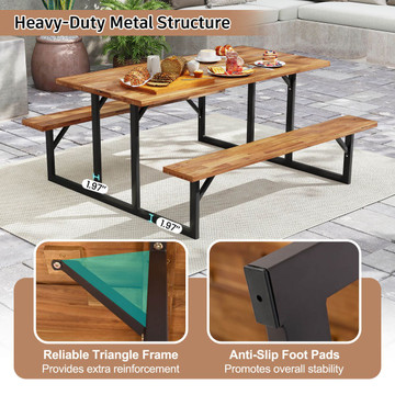 - Crafted from HDPE tabletop and bench seats to withstand outdoor elements