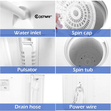 The Twin Tub Compact Laundry Washer is the perfect solution for your laundry needs. With a generous 12 lbs washing capacity and 8 lbs spinning capacity, it's perfect for tackling all your laundry needs, from delicate garments to bulky towels. The easy-to-use control knobs and dual motors ensure effortless cleaning with minimal noise. Plus, its compact design and built-in handles make it a breeze to transport and store, even in the smallest spaces. Don't miss out on this incredible deal and elevate your laundry experience today!