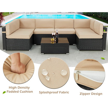 - Rattan 4-Piece Patio Furniture with Glass Top Table