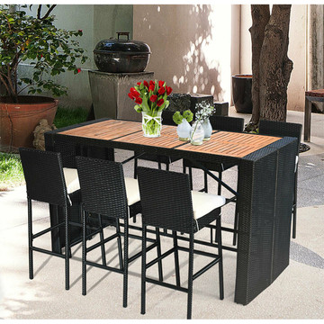 - Rattan 7-Piece Patio Dining Set with Cushions