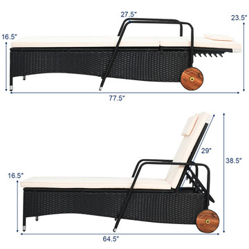 Are you searching for a chaise lounge that will help you enjoy the sunshine in your outdoor space? Look no further than ours! We designed this lounge chair with a sturdy steel frame and premium PE rattan, so it can hold up to 360 pounds while also being weather resistant and durable. The removable foam cushion provides a comfortable seating experience, while the adjustable backrest can be adjusted to six different positions for maximum comfort. With its modern and simple style, this lounge chair is perfect for any outdoor or indoor space like poolside, patio, porch, or seaside. Plus, we included ropes to keep the cushion in place and a zippered cushion for easy removal and cleaning. So get ready to relax in the sun with this chaise lounge that's easy to assemble!