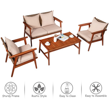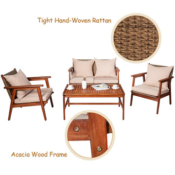- Rattan Storage Cabinet with Acacia Wood Countertop