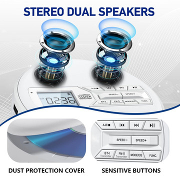 - 8-in-1 Multifunctional CD Player: The CD players for home offers 8 functions: CD, Dual Bluetooth, FM transmission, USB, AUX, 10-speed, 5 EQ, and repeat. The portable cd players for home supports CD, CD-R, CD-RW, MP3, and WMA formats, along with 5 sound effects: BLT, POP, ROC, JAZ, and CLA, and is built-in with an upgraded 1500 mAh lithium polymer rechargeable battery.Last Memory & A-B Repeat: This cd player with speakers remembers the last playback position, resuming from where you stopped. Use the "A-B" repeat function to replay specific sections without manual adjustments, perfect for learning melodies or enjoying favorite tracks.Upgrade Your Car Audio Experience: This portable cd player with bluetooth enjoys wireless music via the built-in FM transmitter or wired playback using the included 3.5mm AUX cable. Perfect for enjoying crystal clear sound in the car.Anti-Skip & LCD Display: The cd player bluetooth equipped with anti-skip protection, it ensures smooth playback even on the move. Features a backlit LCD display for clear visibility, even in low-light nighttime conditions.10 Adjustable Speeds & Backlit Button: The bluetooth cd player Freely adjust playback speed from slow to fast for different needs. The backlit button make operation easy and add a premium feel, enhancing usability in any lighting conditionWidely Used & Ideal Gift: Perfect for language learning, audiobooks, bedtime stories, and more, this small cd player fits any room. It is a great gift for music lovers, K-pop fans, yoga enthusiasts, kids, elders, parents, and friends.