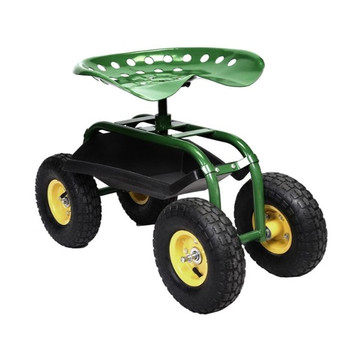 The Rolling Garden Cart with Heavy Duty Tool Tray is the perfect companion for your gardening adventures. Its sturdy steel frame and large pneumatic tires make it easy to maneuver over any terrain, while the adjustable-height swivel seat and durable under-seat tray keep your tools and supplies within reach. With its weather-resistant construction, this cart is built to last, making it a valuable investment for any gardener.