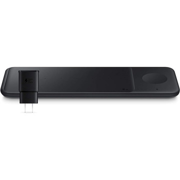 Experience the epitome of convenience with the Samsung® Wireless Charger Trio, EP-P6300TBEGUS. This 3-in-1 charger redefines multitasking, boasting more coils for effortless alignment and the ability to charge up to three devices simultaneously. With fast charging capabilities and intuitive LED lights that indicate your device's charging status, staying powered up has never been easier. The Samsung® Wireless Charger Trio provides a maximum of 9V of power, ensuring a quick and efficient charging experience. Simplify your charging routine and stay connected effortlessly with this cutting-edge wireless charger.