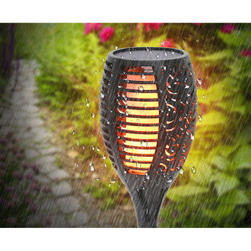 The Solarek® Wall-Mounted Solar-Powered LED Light features 96 LEDs that cast realistic flickering flame lighting effects to add a romantic atmosphere to your BBQ, front door, or party.