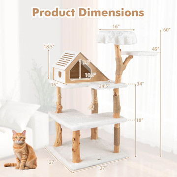 Give your cat the ultimate hangout with the Solid Wood Cat Tree! Forget flimsy, this is natural pear wood crafted into a stylish, stable design with a cool cattail basket perch. It's got a private condo, jute scratching posts, and a multi-level layout for endless exploration. The removable, washable cushion keeps things fresh, and the anti-tipping device means worry-free playtime. With its unique grain patterns and sturdy construction, this cat tree is a piece that will look good in your home. Order yours today and watch your cat claim its new kingdom!