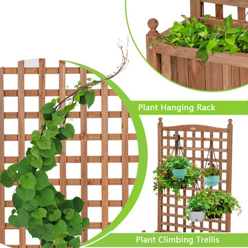 Introducing the newest addition to our outdoor collection: the Solid Wood Planter Box with a Trellis! Made from 100% solid wood, this weather-resistant and durable planter box is perfect for any outdoor space, such as your yard, garden, patio or balcony. It features drain holes for easy drainage and a trellis to support your climbing plants. Plus, it has a large storage space and high load capacity – so you can create a romantic pastoral atmosphere in no time! Get yours today while supplies last!