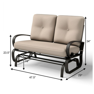 Reclaim your downtime with the Spacious Steel-frame Patio Glider! Forget stiff seating and embrace smooth, gentle motion in a loveseat built for two. Crafted with a sturdy steel frame and breathable, weather-resistant fabric, this chair is made to last through seasons of porch hangs, backyard chats, and garden escapes. The ergonomic design offers maximum comfort, while the gliding motion melts away stress. At just under 50" wide, it fits perfectly on any patio, porch, or balcony. Time to relax? Absolutely. Order your Spacious Steel-frame Patio Glider today!