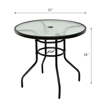 - Square 32'' Steel Frame Tempered Glass Top Patio Table