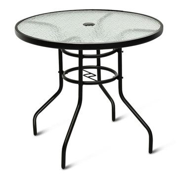 Upgrade the look of any outdoor space with our stylish Square 32" Steel Frame Tempered Glass Top Patio Table. The neutral black color complements most existing furniture, while the contemporary design adds a modern touch to any patio or garden spot. Enjoy a cup of coffee or have a pleasant meal outside with this easy-to-clean table crafted from iron and 5mm tempered glass that is weather resistant. Get yours today before it's gone!