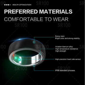 - SR100 Smart Ring Health Tracker Heart Rate Blood Pressure Blood Oxygen IP68 Waterproof NFC Access Control Suitable for Men Women Size 20
