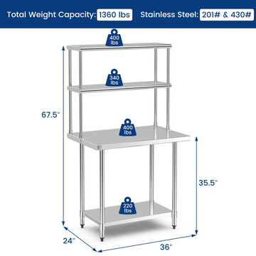 - Tabletop and Shelf Material: 430 Stainless Steel