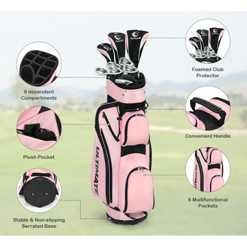 The Golf Stand Cart Bag is the perfect companion for your next round of golf. Its lightweight design and comfortable shoulder strap make it effortless to carry, while the full-length dividers protect your clubs. With eight spacious pockets, you'll have plenty of room for all your essentials. Plus, the durable stand with angled feet and lock strap ensures stability on any terrain. Whether you're a seasoned pro or just starting out, the Golf Stand Cart Bag will help you enjoy your game to the fullest.
