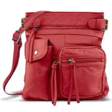 - Super Soft Genuine Leather Crossbody Bag with Top Belt Accent