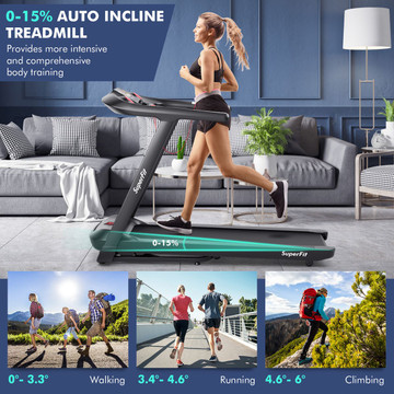 - SuperFit 4.75HP Electric Folding Treadmill with APP Auto Incline Preset Program