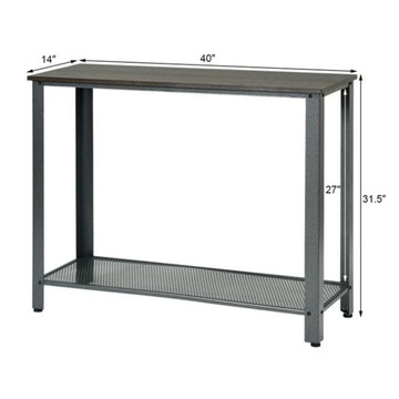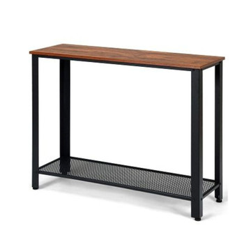 - Vintage C-Shaped Sofa Table with Side Pocket & Metal Frame