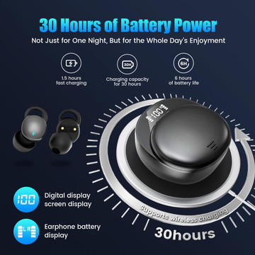- Wireless Bluetooth Earbuds Comfortable Noise Blocking LED Power Display Music Sleep Dual Mode for Sleeping Working Hiking Color Black