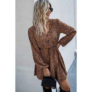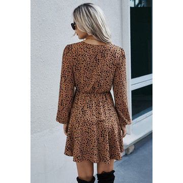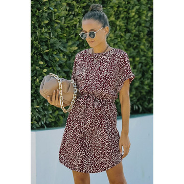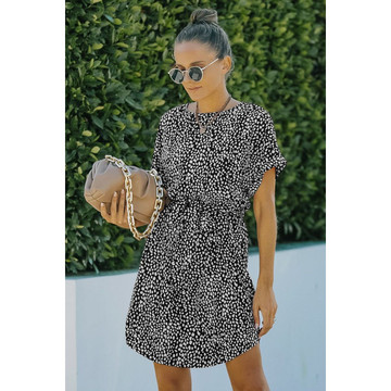 - Women's Abstract Dotted Waist Tie Casual Dress