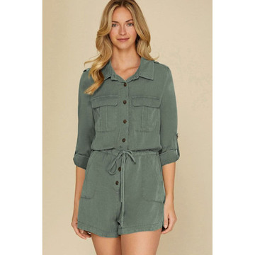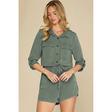 - Women's Ribbed Roll-Tab Sleeve Chest Pocket Oversized Top