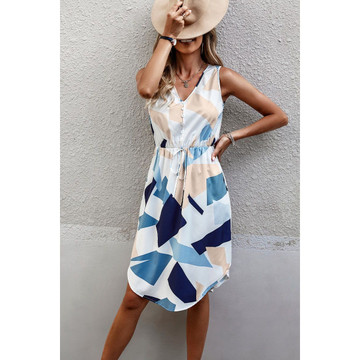 Embrace your adventurous spirit with our Women's Wild at Heart Sleeveless Midi Dress. This captivating piece boasts a flattering V-neckline, stylish button front detail, and a drawstring tie at the waist for a perfect fit. Its vibrant fuchsia woven fabric adorned with bold leopard prints exudes a fierce yet feminine charm. The sleeveless design, relaxed fit, and knee length ensure style and comfort for any occasion. Unleash your inner femininity in this stunning dress that combines fashion and functionality effortlessly.