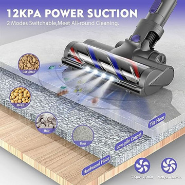 The ZOKER Direct Stick Vacuum Cordless Vacuum with 2200mAh Batteries SP-003E is the perfect cleaning solution for your home. With its lightweight design and 2 speed levels, you can easily switch between the highest mode for deep cleaning or the standard mode for everyday cleaning. The 5-stage high-efficiency filtration system captures 99.99% of tiny dust particles, while the 4 LED headlights illuminate dark corners for a thorough clean. The flexible 180° swivel side to side and 90° up and down allows you to reach every nook and cranny, and the detachable stick vacuum cleaner cordless with a 2200mAh 6-cell battery provides up to 35 minutes of cleaning time. Plus, the ZOKER Direct vacuum cleaner cordless can be assembled into 6 combinations to meet all your daily cleaning needs, from floors to curtains to ceilings.