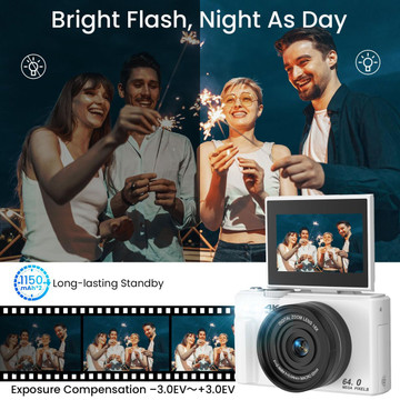 Wish list Quick view 64MP Digital Camera 4K Video Vlogging YouTube Photography Flip Screen 18X Zoom Gift for Teens Color White With Dual Batteries $119.99 Unlock unparalleled visual storytelling with the 64MP Digital Camera. Capture life's defining moments in brilliant 4K video and stunning 64MP photos, perfect for documenting your passions or crafting... + Add to Cart